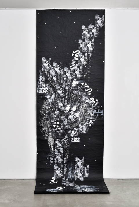 With a series of silkscreens on blackwrap and organza, Eva Mitala’s fourth solo exhibition, Blackwrap, examines the multilayered nature of femininity and moral autonomy, emphasizing personal responsibility and critical thinking grounded in individual values rather than societal norms. The artist explores themes of alienation and nostalgia, creating a sense of narrative mystery. She often draws from photos, historical images, pop culture, and film.