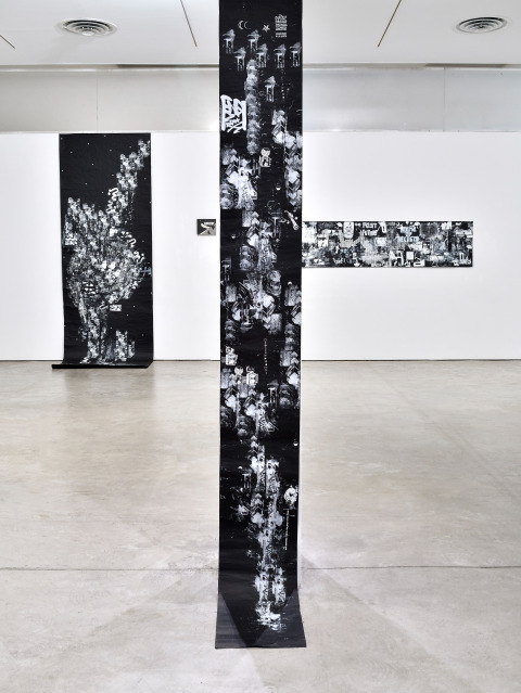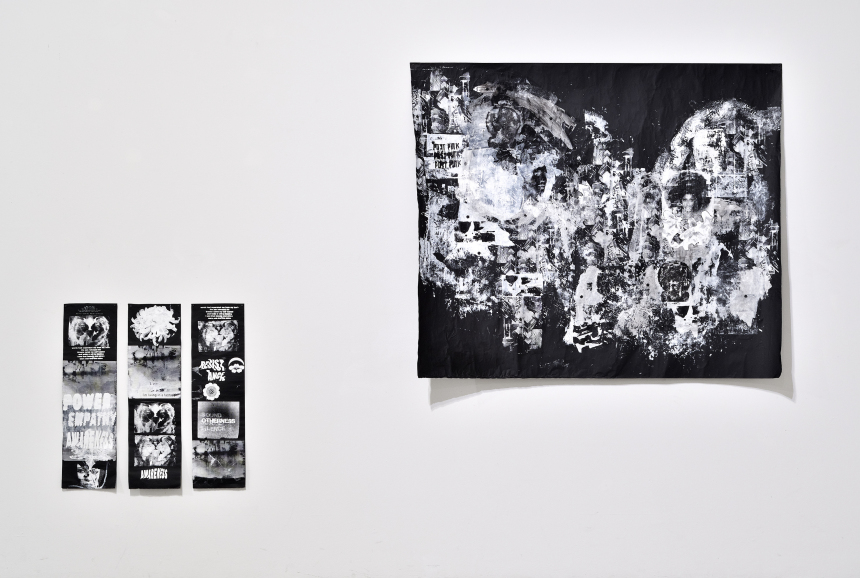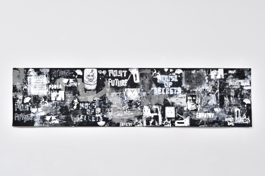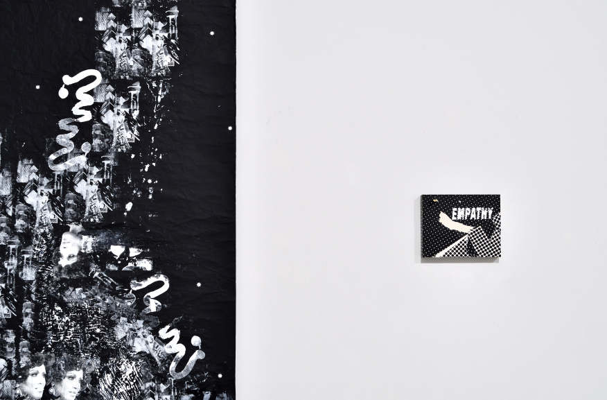 With a series of silkscreens on blackwrap and organza, Eva Mitala’s fourth solo exhibition, Blackwrap, examines the multilayered nature of femininity and moral autonomy, emphasizing personal responsibility and critical thinking grounded in individual values rather than societal norms. The artist explores themes of alienation and nostalgia, creating a sense of narrative mystery. She often draws from photos, historical images, pop culture, and film.