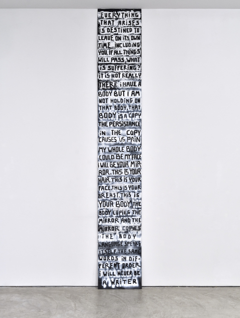 Transparent films, glass, wood, and fabric merge in her process, while the materiality of blackwrap embodies the intimate emotions of her years in West Berlin, reflected in the underground muse Tabea Blumenschein. After moving to the West Coast and navigating feelings of isolation, the artist redefined her sense of empowerment through her engagement with the San Francisco muse, Honey Mahogany.