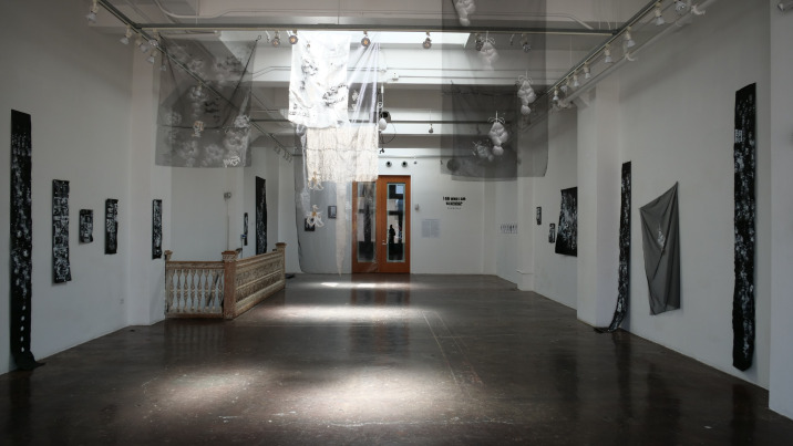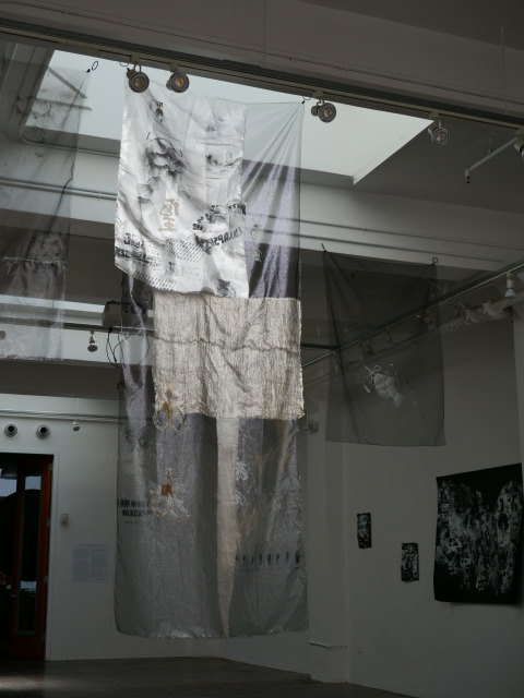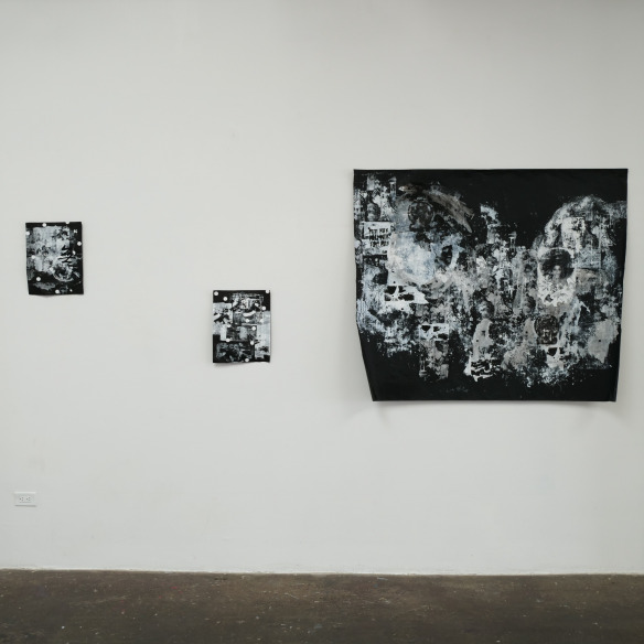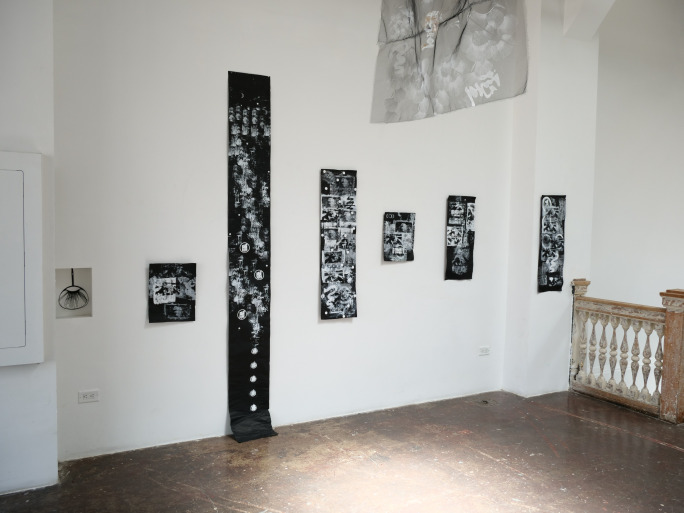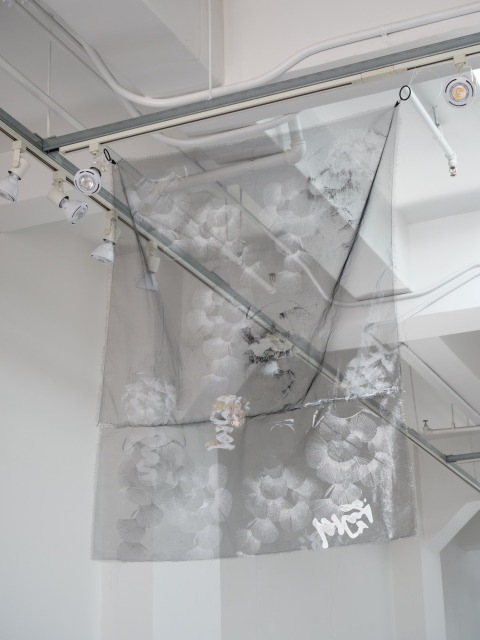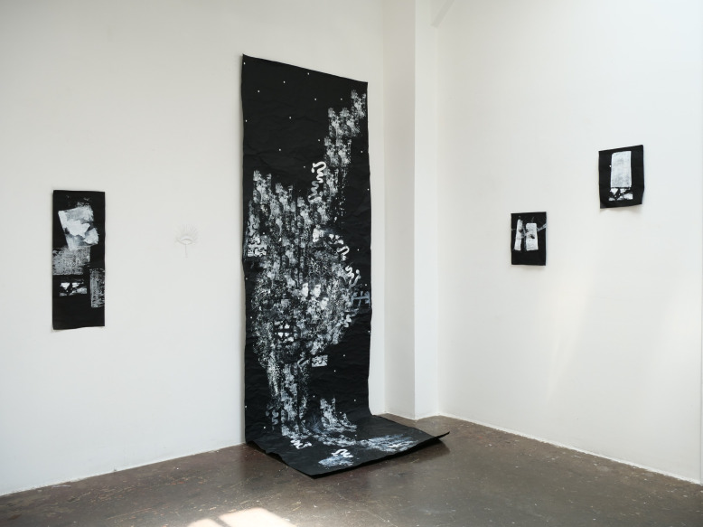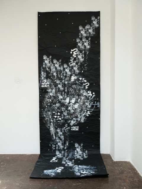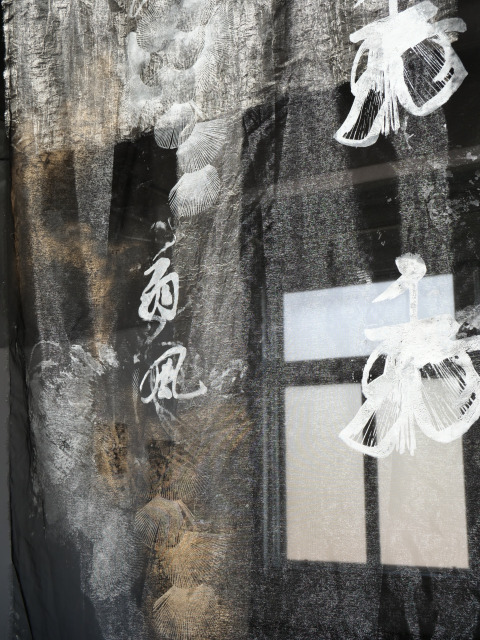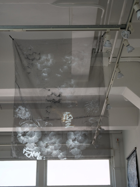 Mitala’s artistic practice is likewise guided by the same values. The materials she uses in her artworks and the processes that lead to the final outcome are a combination of chance and choice. Silkscreen printing, painting, digital images and writing on airy silk organzas, canvas, paper or the latest addition of the heavy, sculptural, light-blocking black wrap, “all come together to a harmonious union of opposites that transcends the boundaries of cities and people, reflecting on a universal fragility and celebrating the ephemeral nature of all things”, to rephrase the artist herself.