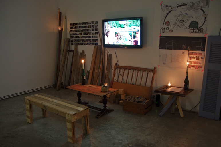 Yukihiro Taguchi built up his house at Curvy Street – Kreuzberg from wasted material he collected from the streets of Berlin. In this architectural structure titled Discurvy, where he lived for one year and a half, was transforming it both as form and as a social condition bringing together over a hundred of individuals – viewers – participants to this experimental project.